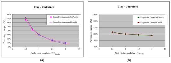 Sensitivity of elastic modulus for clay layers (undrained) in PLAXIS and SoilWorks.