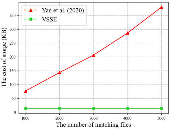 Implementation and settings. In order to provide a more realistic evaluation of the scheme’s performance in practical applications, we conducted tests using the Enron email dataset, which reflects real-world scenarios. This dataset contains email information from approximately 150 users across different folders. We selected 30,109 files from the Enron email dataset to form the file collection. Then, we utilized the method described in refs. [39,40] to extract 77,000 keywords from these files. We implemented VSSE in Python. Specifically, we used AES-256 and SHA-256 to implement the pseudo-random function and hash function, respectively. For the verification module, we used Solidity to build Ethereum smart contracts and utilize Ganache to evaluate the smart contracts. We have conducted a comparative analysis between VSSE and the existing schemes presented in refs. [26,32] to demonstrate the advantages of our proposed scheme. In particular, the scheme in refs. [32] is a blockchain-based solution and is also the primary comparison object in our study.