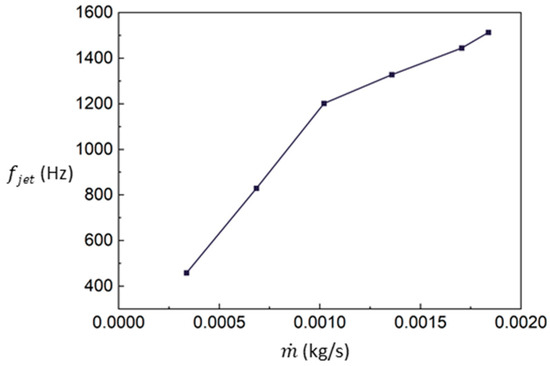Sweeping frequency of the sweeping jet for different mass flow rates.