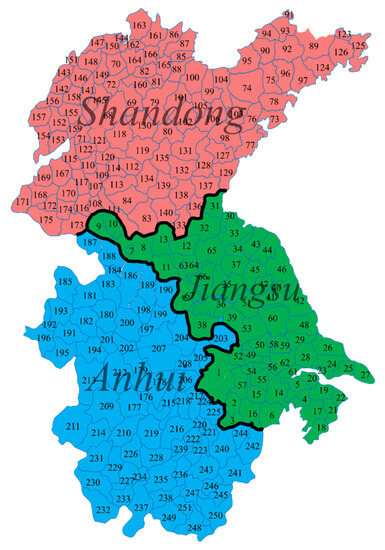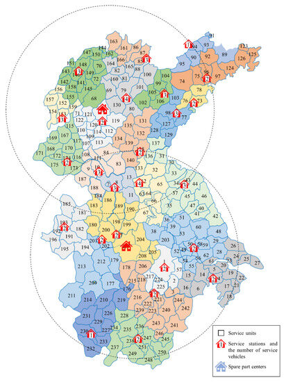 In this section, a real case in East China is conducted to demonstrate the efficiency of the proposed mathematical model and solution algorithm. The real maintenance data in three provinces, e.g., Shandong, Anhui, and Jiangsu, is shown first and the optimal location–allocation plan is then obtained in the next part. Finally, several analyses are conducted to verify the application and performance of the developed mathematical model and solution approach.