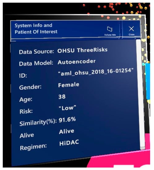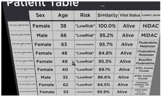 - Lau, C.W.; Qu, Z.; Draper, D.; Quan, R.; Braytee, A.; Bluff, A.; Zhang, D.; Johnston, A.; Kennedy, P.J.; Simoff, S.; et al. Virtual reality for the observation of oncology models (VROOM): Immersive analytics for oncology patient cohorts. Sci. Rep. 2022, 12, 11337. [Google Scholar] [CrossRef] [PubMed]