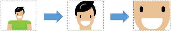 Based on the results of [9], a finer image pre-processing model was adopted for this analysis. Utilizing the object detection algorithm of [39] combined with the approach of [40], the face of the subjects in the images were first segmented. After segmentation, the algorithm was developed to extract the left eye and mouth regions from the face images using the approach of [41], with the bounding box locations of the detected regions the utilized as guidelines for further cropping. The dimensions of the left eye boundaries were optimized so that the eyebrow is included and then extended to encompass the right eye and eyebrow region as well.