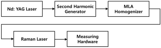 A pumping radiation of 532 nm was transmitted through a single microlens array (MLA) homogenizer, and focused into a KGW crystal via a condenser lens, producing a sharp 4.1 × 4.1 mm rectangular cross-section channel along the crystal. The polarization of the 532 nm radiation was set to be parallel to the axis Nm, to obtain a Stokes shift of 901 cm−1.