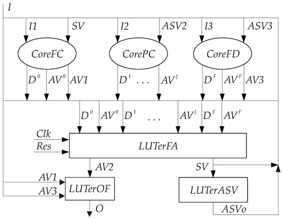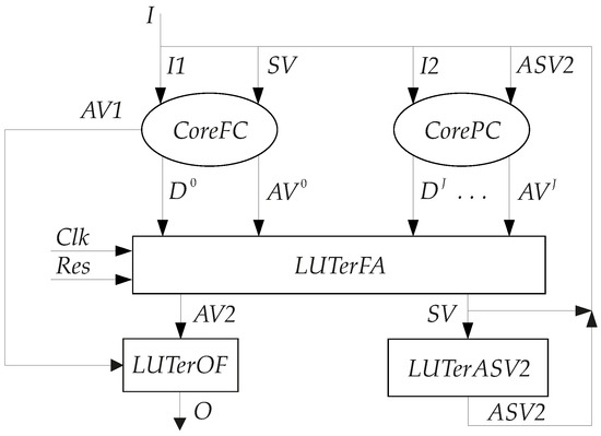 22]. The first core generates PBFs based on MBCs. The second core uses ESCs for this purpose. This approach allows for reducing hardware in the state transformer circuit because now only a part of the MBCs is transformed into ESCs. The scientific novelty of the proposed approach also includes an improvement in the known method of encoding of output collections by some additional variables. This encoding is done so that each of the cores includes some additional variables that do not occur in the second core. Thanks to this approach, the number of LUTs generating additional variables is reduced. Our current research shows that joint usage of these two approaches leads to FSM circuits having fewer LUTs compared to FSM circuits based on the approach in [