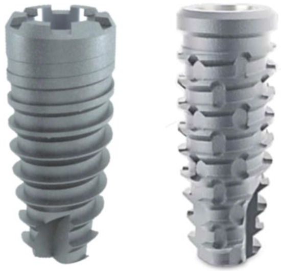 - Beutel, B.G.; Danna, N.R.; Granato, R.; Bonfante, E.A.; Marin, C.; Tovar, N.; Suzuki, M.; Coelho, P.G. Implant Design and Its Effects on Osseointegration over Time within Cortical and Trabecular Bone. J. Biomed. Mater. Res. 2016, 104, 1091–1097. [Google Scholar] [CrossRef]