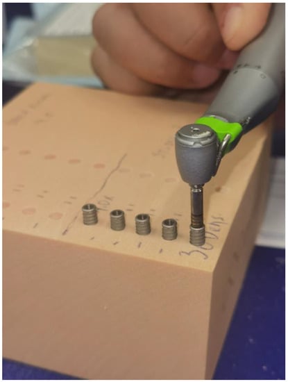 It has recently been demonstrated that polyurethane exhibits biomechanical properties similar to human bone tissue, including linear elasticity and isotropic constitutive symmetry [10,11,16,17,18]. These characteristics make polyurethane a suitable material for conducting biomechanical tests on dental implants, including the assessment of IT, RT, and resonance frequency analysis (RFA) [19]. Furthermore, polyurethane is available in various thicknesses and densities, spanning from D1 to D4, according to Mish classification [13].