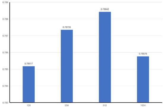 The hyperparameters of the LTransformer are parameters whose values control the deep learning process and determine the values of parameters that the algorithm ends up learning. Different hyperparameters of the LTransformer were analyzed in the experiment. We tested the accuracy of the model by adjusting the value of one parameter, while keeping the training set and other parameters constant. Figure 7 shows the accuracy of the LTransformer model with different dimensions.