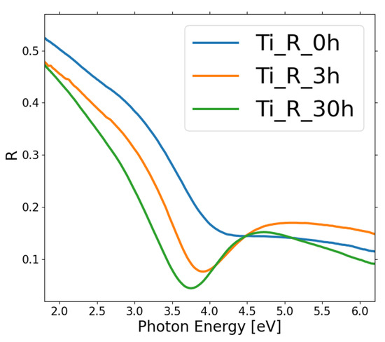 The absolute reflectance of Ti electrodes was measured at an incident angle of with unpolarized light. A spectrophotometer (SolidSpec-3700 DUV, Shimadzu, Kyoto, Japan) was used for the measurements.