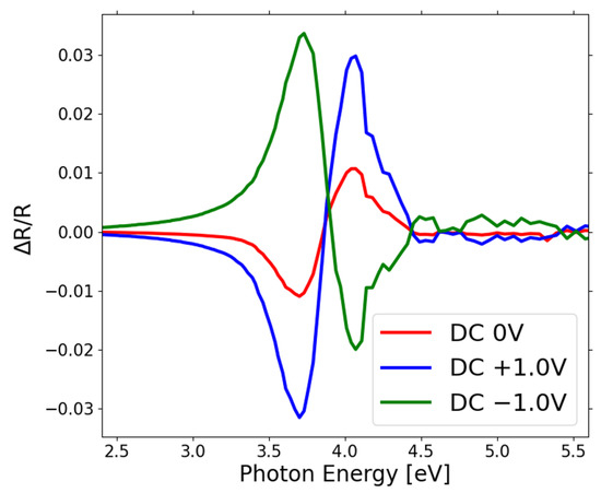 DC voltage dependence of electroreflectance spectrum ( signal at 2 V AC and 20 Hz. As in Figure 4, the signal was neglected because it is much smaller than the signal).