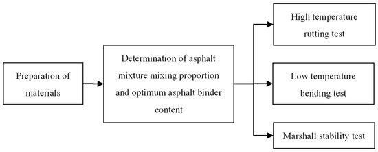 On the basis of the related regeneration research carried out by the above researchers, this paper studied the improvement in the performance of a waste engine oil, recycled asphalt mixture modified by carbon nanotubes, which provide a new method for the recycling of old asphalt. This paper prepared a heat-recycled asphalt mixture without RAP, a heat-recycled asphalt mixture with 40% RAP, a waste engine oil, recycled asphalt mixture with 40% RAP, and a carbon-nanotube-modified waste engine oil, recycled asphalt mixture with 40% RAP. The road performance of the RAP heat-recycled asphalt mixture was tested using the high-temperature rutting test, low-temperature bending test and Marshall stability test, and the influence of waste engine oil and different contents of carbon nanotubes on the road performance of the RAP heat-recycled asphalt mixture was analyzed. The experimental flow chart is shown in