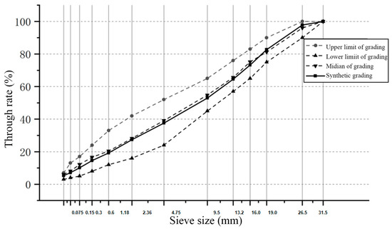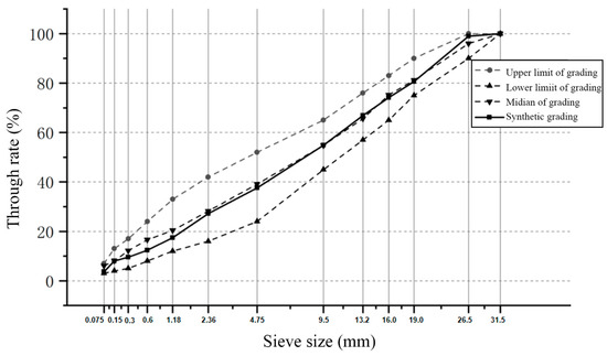 Figure 2. At the same time, an asphalt mixture without RAP was prepared as a blank control group, and the grading curve of this group is shown in