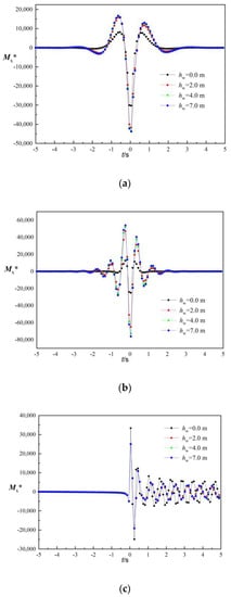 Change of bending moment of the underwater immersed tunnel during different riverbed water depths. (a) vc = 0.2 vs, (b) vc = 0.5 vs, (c) vc = 1.2 vs.
