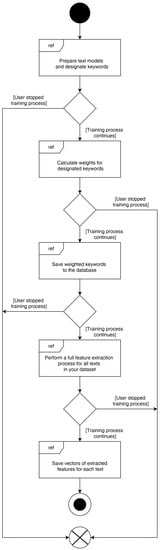 Therefore, the word k is removed from all keyword vectors and dynamically appended to the stop list for the currently used dataset. As a result, the size of the keyword vectors (the number of words in the vector) is n − 1, where n is the initially assumed number of keywords. The next step is to fill in the missing space by adding the next keyword occupying the next position in the sorted set of pairs for each category.