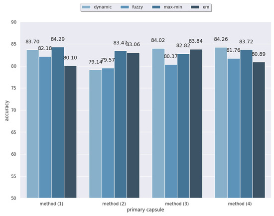 - Fuzzy routing [21]: To address the computational complexity of EM routing, Vu et al. introduce a routing method based on fuzzy clustering, where the coupling between capsules is represented by fuzzy coefficients. This approach offers a more efficient alternative to EM routing, reducing the computational demands, while still enabling effective information flow between capsules.