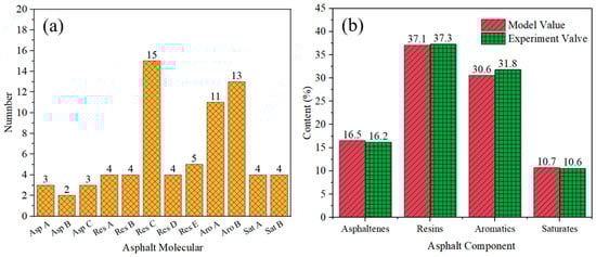 Asphalt 12-component model parameters: (a) the number of molecules; (b) the mass fraction of asphalt component.