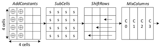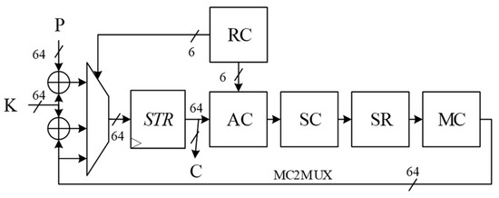 - Bogdanov, A.; Knudsen, L.R.; Leander, G.; Paar, C.; Poschmann, A.; Robshaw, M.J.; Seurin, Y.; Vikkelsoe, C. PRESENT: An ultra-lightweight block cipher. In International Workshop on Cryptographic Hardware and Embedded Systems; Springer: Berlin/Heidelberg, Germany, 2007; pp. 450–466. [Google Scholar]