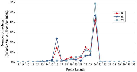 Kwon et al. proposed a new filter structure called the length-aware cuckoo filter (LACF) in ref. [26], which realizes faster IP lookup with limited memory requirements. The basic idea of the LACF is to use different numbers of hash functions to insert and query routing entries based on the prefix length popularity. Due to the double insertion mechanism for the prefixes of less popular lengths, the LACF has a lower false positive probability.
