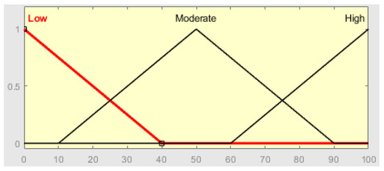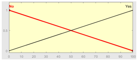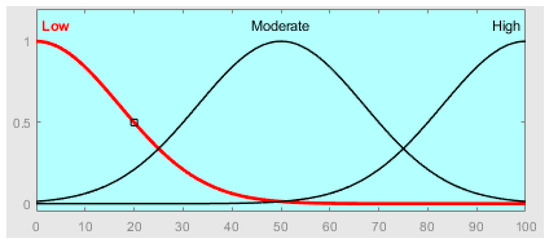 In this research, the expert system employed is built upon the principles of fuzzy logic. Unlike traditional binary logic, which categorizes propositions as either true or false, fuzzy logic operates on a spectrum of values, allowing for more nuanced and continuous evaluation [30]. The foundations of fuzzy logic were laid by Zadeh [31], who introduced the concept in his influential 1965 paper titled “Fuzzy Sets.” Fuzzy theory encompasses various approaches that utilize fundamental concepts of fuzzy sets and membership functions. According to Zadeh [31], membership functions are used to determine the degree to which an element belongs to a set. Unlike crisp sets, where membership is strictly binary, membership degrees in fuzzy sets range between zero and one, allowing for partial membership (Equation (1)). A membership degree of zero indicates that an element does not belong to the set, while a degree of one denotes complete membership. The introduction of fuzzy theory has provided a novel means of expressing and handling uncertainties [32].