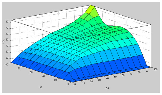 3D graph of inputs (CS: steel corrosion, IC: chlorine ion), and output (CCL: reinforced concrete corrosion due to chlorine ion diffusion).