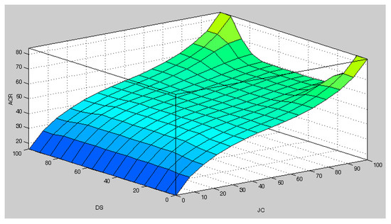3D graph of inputs (DS: reduction of concrete strength, JC: ACG leakage) and output (ACR: alkali–carbonate reaction of aggregates).