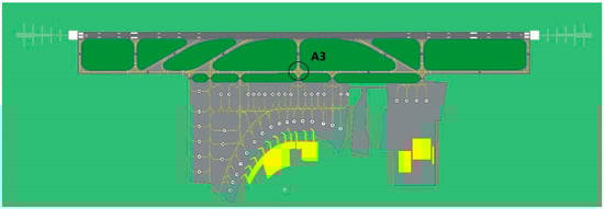 The layout of the simulated airport (the A3 is a hot point in taxi way).