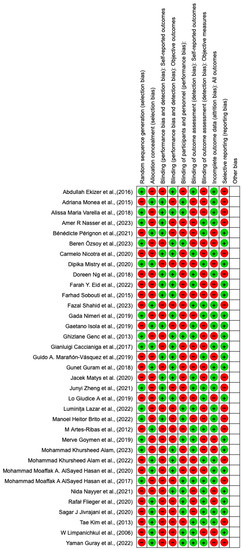 Risk of bias: red indicates high risk, and green indicates low risk.