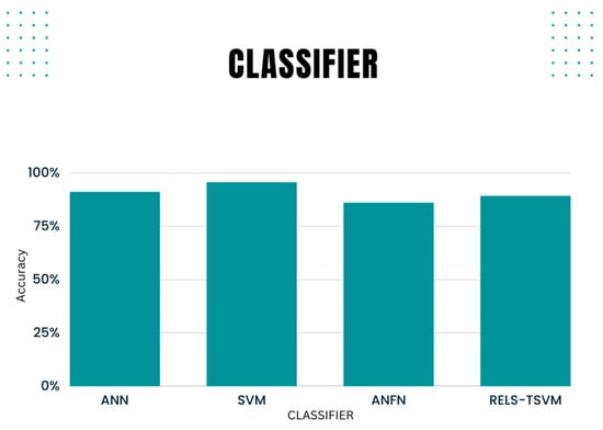 Figure 4, the accuracy, sensitivity, and specificity parameters for MLP classification are equal to 91%, 95%, and 87%. The statistical measures for validation by the SVM and MLP classifiers are shown in