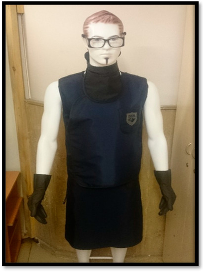To measure the equivalent doses to the operator’s body and to estimate the doses as recorded by an occupational dosemeter, pre-calibrated thermoluminescent dosemeters (TLDs) (LiF: Mg, Cu, P, Harshaw Chemical, Solon, OH, USA) were placed on the mannequin and the phantom head (Figure 1 and Figure 2). TLD-100H dosimeters are in the form of a 4.5 mm diameter and 0.89 mm thick disk (chip) and are sensitive to small quantities of radiation down to 1 μGy.
