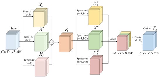 (1) passes through three branches with temporal convolution kernel sizes of 3, 5, and 7, respectively, and the dimensionality of the output feature maps is constant in size, denoted as Afterward, the feature maps of the three branches are summed up element by element: