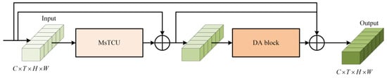 Finally, residual connections are added to the MsTCU and DA block, respectively, to ensure the propagation of information across layers, as shown in Figure 6: