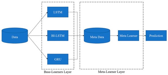 Examining the architecture, the data consists of data from sensors that are strongly correlated with the data from the sensor we want to predict based on the results from the correlation heatmap analysis. Subsequently, in the Base-Learners Layer, data serves as input to the LSTM, BI-LSTM, and GRU models configured as the base models. As a result, each base model learns the unique characteristics of different time-series data and generates meta-data based on this knowledge. The generated meta-data within the Meta-Learner Layer is used to train a Meta Learner [49]. The Meta Learner combines the various prediction outputs generated by the base models to predict the sensor data ultimately.