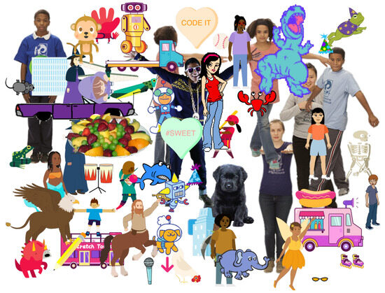 Recall that one of the application domains for this task is computer science education for children. Therefore, we decided to collect data from Scratch [22,23], one of the world’s most popular children’s programming environments. Within Scratch, there are two main types of images: backdrop images and character images. The characters are referred to as “sprites” in Scratch terminology.