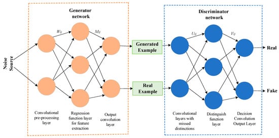 where represents the low-resolution image, represents the real high-resolution image, and represents the chance that the image produced by the generator is a real high-resolution image by identifying it.