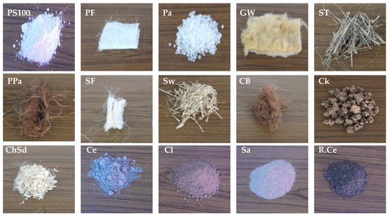 - Natural: Stipa Tenacissima (ST) or Alfa fiber, Palm Petiol (PPa), Sisal Fiber (SF), Straw (Sw), Corn Bristles (CB), Cork (Ck), and Chip-Sawdust (ChSd), very diffused in the local Moroccan area;