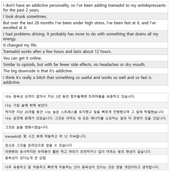 Translations were made using the Google Translate API. An example of an original text and the translation result is shown in Figure 6.