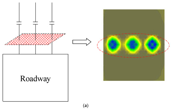 Characteristics of prestress distribution of HSCTS support system and ordinary anchor cable are shown in Figure 16. Based on the simulation results, the truss prestressing anchor system in the top slab’s rock layer produced a larger prestressing belt. The prestressing value gradually decreases from the center to the outside, forming a ring structure with left and right symmetry. This structure ensures the stability of the support in the deep rock layer of the top slab and reduces deformation caused by tensile stress.