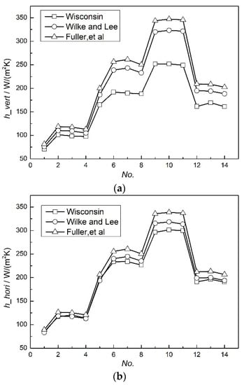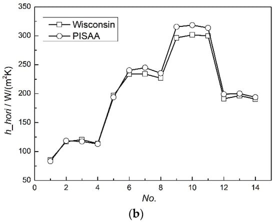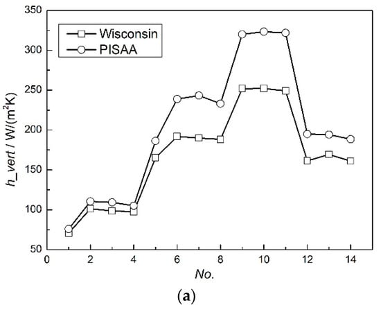In the Wisconsin experiment, two different methods were used to measure the convective heat transfer coefficient, but the uncertainty of the two measurement results was not given. Therefore, in order to improve the reliability of the experimental comparison results, the average value of the results obtained from the two measurement methods was used.