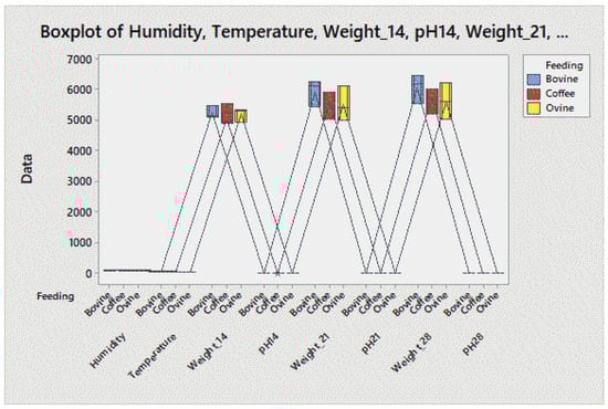 In real experiments, variables that cannot be controlled but that directly affect the process pH must be taken into account because they must be measured and analyzed in order to generate true conclusions regarding the phenomenon under study. Please note that in our study, only the parameters of temperature, humidity and diet were considered. Monitoring the pH was omitted; in future works, it will be taken into account.