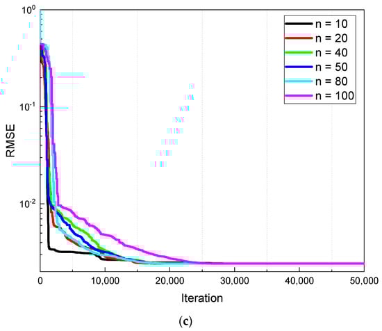 In addition, the convergence characteristics of the algorithm with different population numbers are shown in Figure 5 for three models. When the population number was set above 10, almost the same convergence behavior was seen. However, for the first model, when the population was 40, the speed of convergence was almost better. When the populations of 80 and 100 were considered, the speed of convergence in the second model was the best. For the third model, all populations except 100 almost converged on the same point. For the population of 10, the speed of convergence in the SDM and DDM showed the worst situation among the tested populations, while for the third model, it showed a significant convergence behavior.