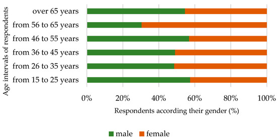 Gender balance of respondents in individual age intervals. Source: processed by authors.