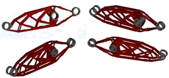 - Bendsoe, M.P.; Kikuchi, N. Generating Optimal Topologies in Structural Design Using a Homogenization Method. Comput. Methods Appl. Mech. Eng. 1988, 71, 197–224. [Google Scholar] [CrossRef]