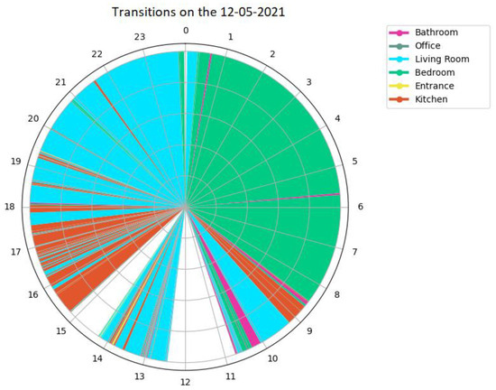 24 h clock visualisation proposed for the study of temporal information associated with the daily routine of a monitored resident.