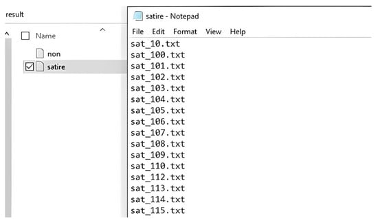 Machine learning, and more recently deep learning algorithms, have been used to detect satirical text [19,38,39,40]. A systematic review study conducted by Sarsam et al. [27] using Twitter data found 31 related studies. Algorithms were classified into Adapted Machine learning algorithms (AMLA), such as support vector machine (SVM) and logistic regression (LR), and other customized machine learning algorithms (CMLA), such as a semi-supervised satire identification algorithm and bootstrapping. The study found that AMLA algorithms were widely used in satire detection studies, and SVM was the most efficient one to predict satire on Twitter. Additionally, lexical, pragmatic, frequency, and part-of-speech tagging features improved the performance of these algorithms.