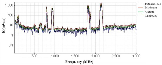 - Seyfi, L. Measurement of electromagnetic radiation with respect to the hours and days of a week at 100 kHz–3GHz frequency band in a Turkish dwelling. Measurement 2013, 46, 3002–3009. [Google Scholar] [CrossRef]