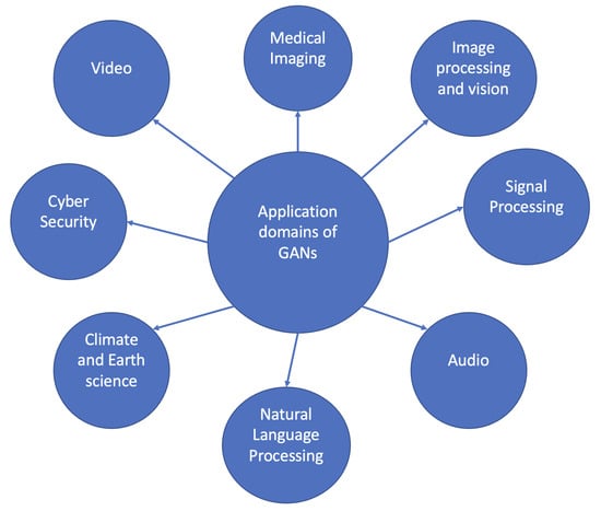 These domains represent the specific areas in which GANs have demonstrated their usefulness and versatility, showing how this innovative approach has been applied in a variety of contexts and sectors.