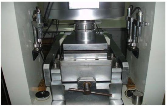 The direct shear tests mentioned in the literature were conducted specifically on the RMT-150 system, which is a well-established and widely used apparatus in the field, as shown in Figure 2. The maximum normal force and shear force were 1000 kN and 500 kN, respectively. In compliance with the methodologies prescribed by the International Society for Rock Mechanics (ISRM), this machine possesses the capability to perform direct shear tests. It operates by applying shear stress at a controlled rate of 0.005 mm/s, facilitating a clear observation of the post-peak behavior exhibited by the cohesive interface.