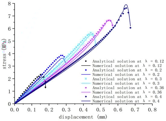 Curves of numerical and analytical solutions of shear stress under different λ.