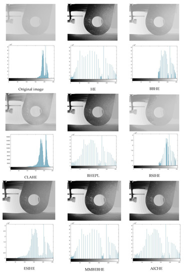 Hence, this study proposes a dual histogram equalization algorithm based on adaptive image correction (AICHE) for image enhancement in the process of moving arm hole machine vision measurement in complex working conditions. With AICHE, the global histogram is divided into two sub-histograms to solve the problem of mean luminance shift, and then the sub-histograms are corrected in two platform limits to avoid the over-enhancement of the image. Next, to prevent image over-enhancement and gray-level merging problems, grayscale correction is conducted using a local grayscale correction algorithm to perform histogram equalization on the basis of maintaining the average brightness of the input image to improve the image contrast while protecting image detail information.
