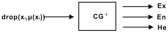 Figure 4 shows a conversion model called the reverse cloud generator that may transform a given quantity of precise data into a qualitative idea symbolized by the digital feature (, He). It realizes the quantitative value to the qualitative concept.