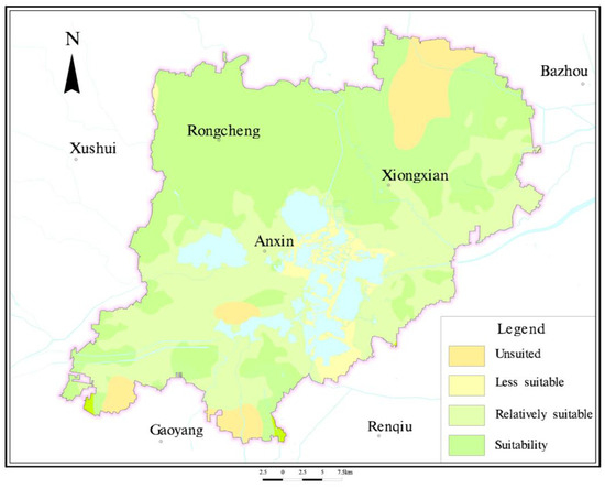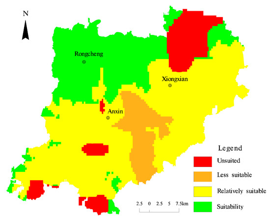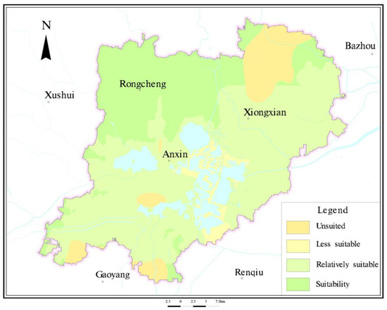 Average composite index method suitability zone map in Xiongan New Area.